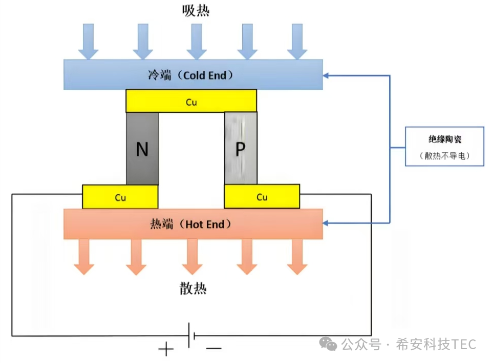 Odp.: Kiedy prąd przepływa przez obwód złożony z dwóch różnych przewodników lub półprzewodników, w punkcie styku dwóch materiałów nastąpi absorpcja lub uwolnienie ciepła ze względu na różne kierunki prądu. Jest to proces konwersji elektrotermicznej i proces odwrotny do efektu Seebecka.
